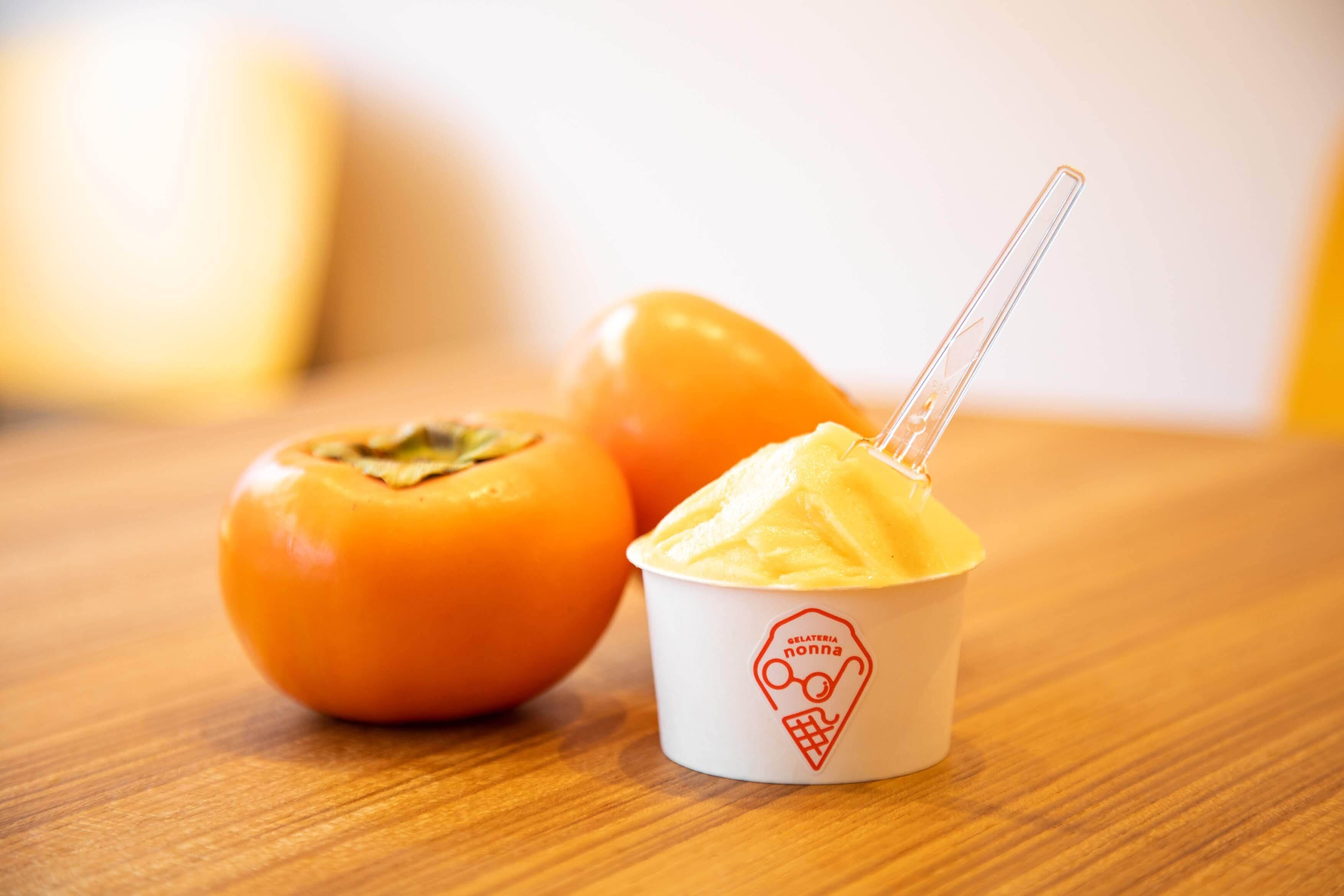 奈良県名産の柿を使用したジェラートです。柿そのものを食べているような食感に仕上げました。牛乳・卵不使用です。